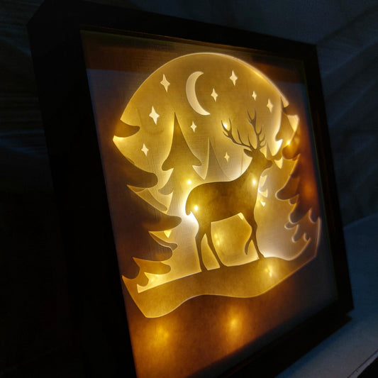 Cadre lumineux Noël - Cerf et Montagnes enneigées