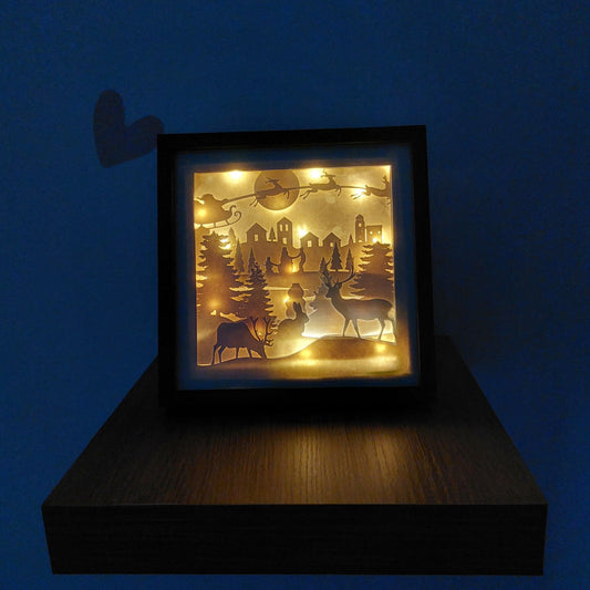 Cadre lumineux Noël - Cerfs et Père-Noël
